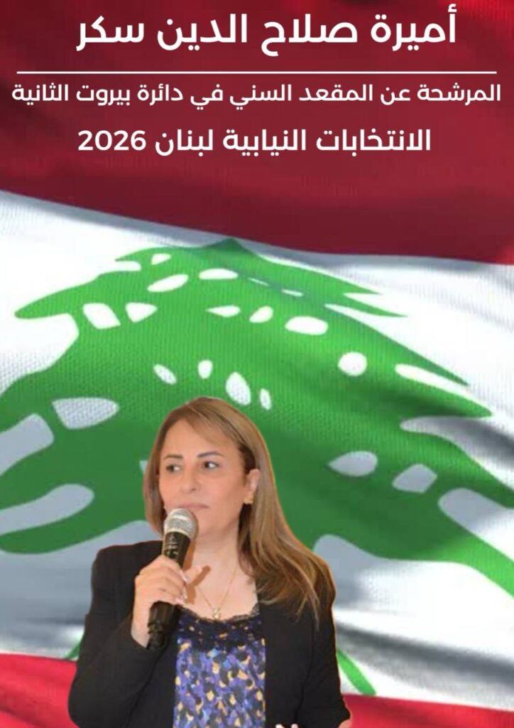 أعلنت السيدة أميرة صلاح الدين سكر ترشّحها للانتخابات النيابية لعام 2026 عن دائرة بيروت، في خطوة تُشكّل دخولاً جديداً لوجه تربوي وحقوقي إلى المعترك السياسي، حاملاً معه خبرة أكاديمية وميدانية واسعة في قضايا التربية والعدالة والأمن المجتمعي.