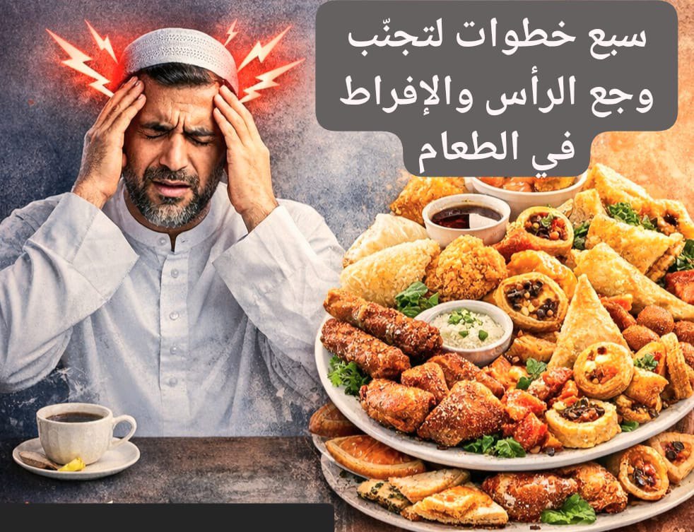 الإكثار من الطعام لا يعوّض ساعات الصيام… بل يحوّلها إلى تعب وصداع ومشاكل صحية.